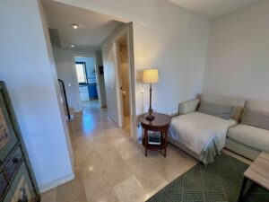 Spacious entrance hall, with a kitchen to the right overlooking the complex and exceptionally bright, with windows and natural light. The laundry area off the kitchen has been converted into a bedroom with a 90-cm bed. This makes it an option for an additional guest!