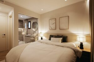 The lower level offers a well-planned and private sleeping area with three spacious bedrooms, all featuring en-suite bathrooms. This floor also includes a separate laundry room and additional storage space discreetly located beneath the staircase.