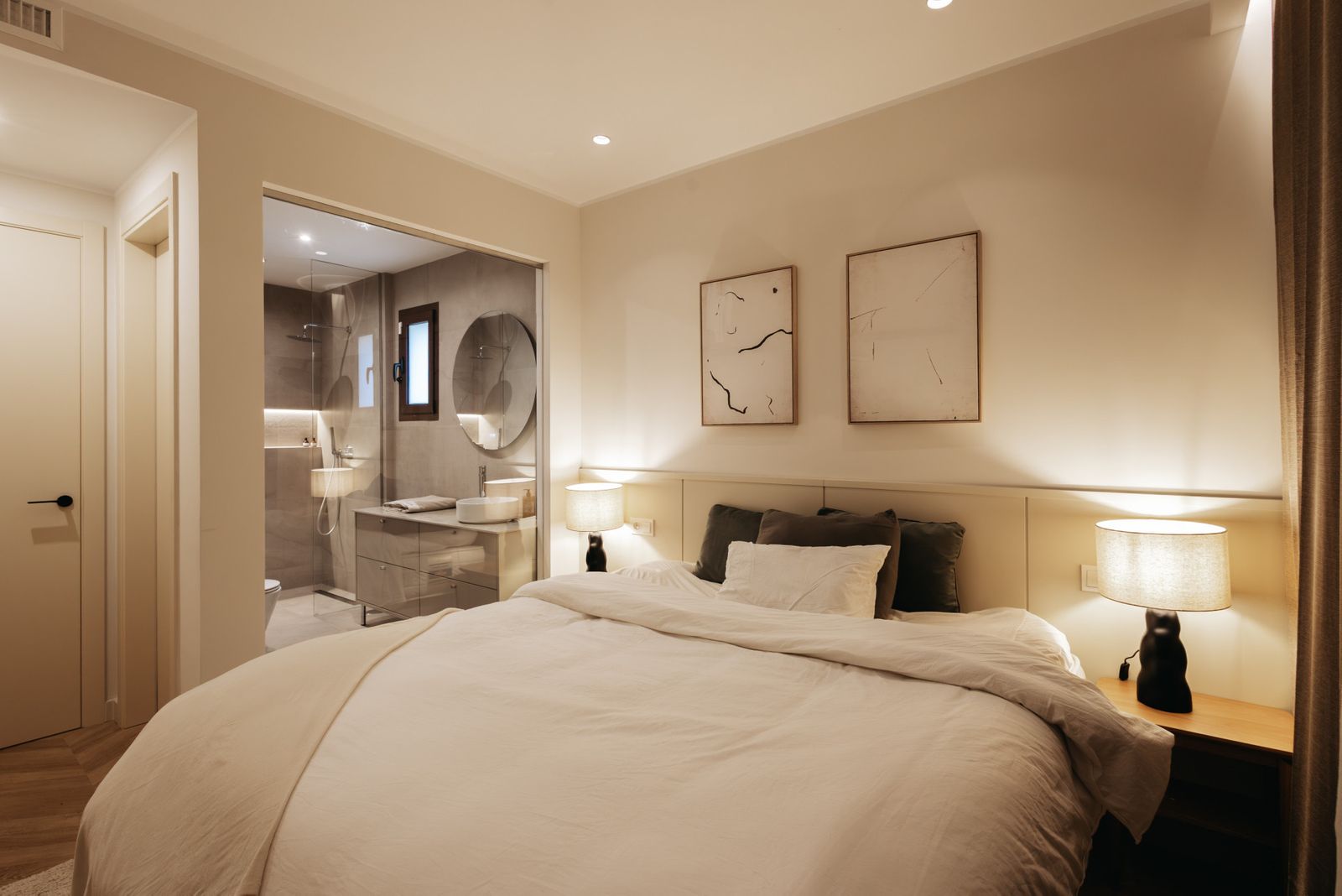 The upper level is crowned by an exclusive living room with direct access to the expansive rooftop terrace, where a solarium, generous lounge areas, and an elegant outdoor bar create the perfect setting for relaxation. Large floor-to-ceiling windows provide abundant natural light, and the space is equipped with two wine coolers as well as an electric fireplace with integrated heating. With 360-degree panoramic views over the Mediterranean Sea and Marbella’s stunning landscape, this is truly the ultimate place to unwind.