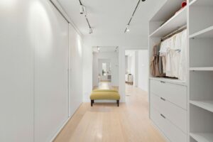 Inside, the attention to detail is evident in every corner. High-quality wooden flooring throughout adds warmth and sophistication, while features such as electric blinds, an advanced alarm system, and a convenient lift ensure ease of living and security. The property also includes two private underground parking spaces and two nearby storage rooms, providing practical solutions for daily convenience.