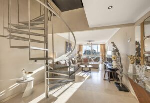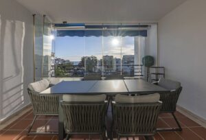 Welcome to Marbella.Imagine waking up every morning with the gentle Mediterranean breeze caressing your face and the promise of a new day in one of the most exclusive enclaves in the world.This luxurious duplex, located in the vibrant heart of Puerto Banús, is not just a property: it is a haven of elegance, serenity and style.From the moment you step inside, you will be dazzled by the exquisite décor, where every detail has been carefully chosen to create a unique visual and sensory experience.The spacious and bright rooms open naturally to the outside, allowing the southern light to flood every corner.On the main floor, the fully equipped separate kitchen is an ideal space for both enjoying fine dining and sharing special moments.Adjacent to it, the living room offers an atmosphere of absolute comfort, perfect for relaxing after a day enjoying the charms of Marbella.On this same level, two bedrooms guarantee rest and privacy:• A master suite with a king-size bed, private bathroom and a cosy glazed balcony where silence and calm reign supreme.• A second bedroom with two single beds and a full bathroom, designed for the comfort of family or guests.Climbing the elegant staircase, you discover the true treasure of the property:a spacious master suite with direct access to the upper terrace.From there, the sea views are a changing spectacle that accompanies every sunrise and every sunset.