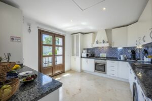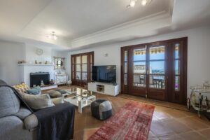 The home has a total built area of 227 m², including 187 m² of interior space and a 40 m² terrace. Inside, you’ll find four good-sized bedrooms and three bathrooms, two of which are en-suite. There are four toilets in total. The living room is bright and comfortable, with a fireplace and mountain views. There’s also underfloor heating, air conditioning, and stone flooring throughout some areas. The kitchen is fully fitted and leads into a dining area, ideal for hosting family meals. A guest room and guest toilet offer extra flexibility. Additional features include a storage room and fitted wardrobes. The house is partly furnished and in good condition, ready for you to move in.