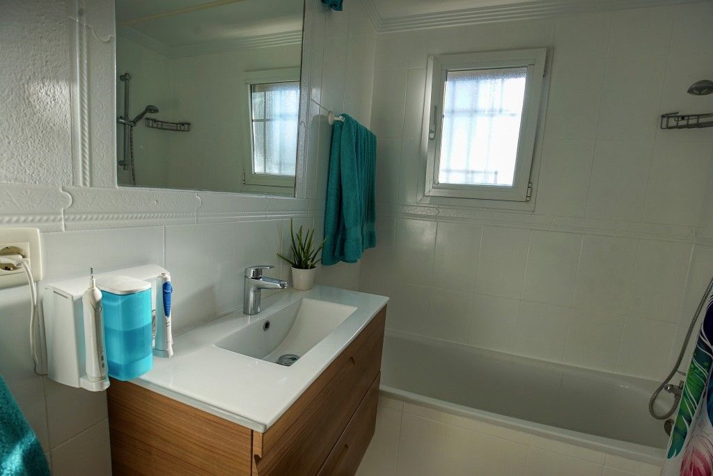 Stylish Corner Townhouse in Estepona Centre. This beautifully upgraded 4–5 bedroom property offers exceptional space, comfort and energy independence — all just a short walk to the Old Town and the beach. The plot is in a prime, quiet yet central location. Comprising of a bright living room with fireplace and new modern kitchen. 4/5 bedrooms including a large top-floor suite with space to add another bathroom. 2.5 bathrooms. Lovely private garden with built-in BBQ, water feature, and room to entertain. Private parking for 2 cars, plus storage & laundry area. 12 solar panels 5kW + battery and solar water heating, near-zero electricity bills. No community fees and low running costs. Turnkey, energy-efficient, and truly unique must-see property!