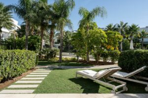 Elegant First Floor – Three beautifully designed bedrooms, including a luxurious master suite with en-suite bathroom. The master bedroom has direct access to a private terrace with garden and pool views, while the additional bedrooms share a full bathroom.