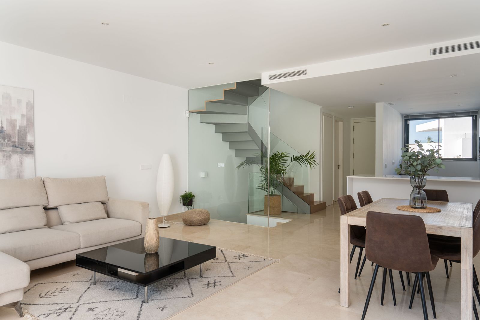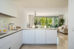 Bright & Spacious Main Floor – Open-plan designer kitchen with Siemens appliances, dining, and living area leading out to a sun-soaked terrace, perfect for al fresco dining. Also includes a guest toilet.