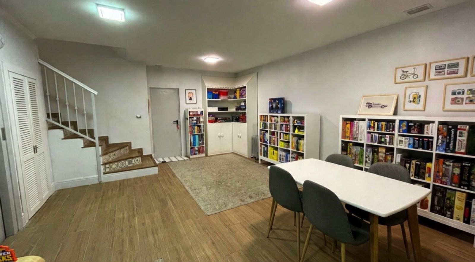 Spacious games room / playroom in the basement with natural light