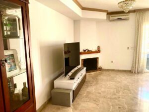 The property is in perfect condition, equipped with central air conditioning with two heat and cold pumps to separate the ground and first floors, and built-in wardrobes in all bedrooms. It features marble floors throughout.