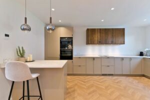 The kitchen is by renowned Scandinavian brand Ballingslöv, fully equipped with modern appliances, including integrated washer and dryer.