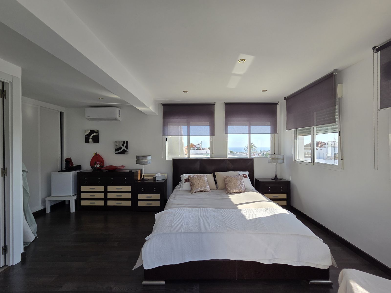 The upper level is dedicated to a spacious fourth bedroom with an en-suite bathroom and direct access to a private terrace. From here, you can enjoy stunning open views of the Mediterranean Sea and the iconic La Concha mountain, as well as a private jacuzzi that creates a perfect setting for relaxation.