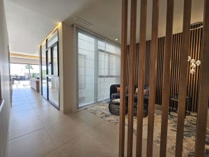 The gated community is just as impressive as the house. It is recognised as one of the most exclusive coastal developments on the Costa del Sol. Spanning approximately 15,000m² this seafront development offers its residents a luxurious beach lifestyle. It boasts a heated outdoor infinity swimming pool, day beds, a children's swimming pool and playground, concierge services, tennis court, padel court, gym, Jacuzzi, outdoor kitchen and BBQ pavilion, and, of course, direct access to the beach and the beautiful promenade. The urbanisation is known for its quality and beautiful style of architecture using natural stone to enhance the serene beach feel and was constructed with a commitment to the environment, promoting a more sustainable construction.
