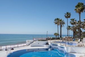 Situated along the renowned New Golden Mile, the property enjoys a prime location, with direct access to the beach via beautiful communal gardens. The centre of Estepona is just a few minutes’ drive away, and the property benefits from excellent road links, including the A-7 coastal motorway, ensuring easy access to Marbella, Puerto Banús and beyond. The area boasts prestigious international schools, making it an ideal location for families, whilst nearby golf courses, sports facilities and supermarkets cater to a variety of needs.