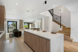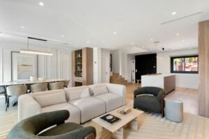 Complete with a fantastic basement layout with independent access from the front of the house. Complete with it’s own kitchen, bathroom, walk-in wardrobe and custom made media wall with fire place. Additional independent access out to the pool from the basement is a unique feature that only Vasari 25 has compared to surrounding houses, a feature that fills the basement area with natural light. An additional laundry room is also located on this level out of sight from the living areas, together with an enclosed garage and parking space.