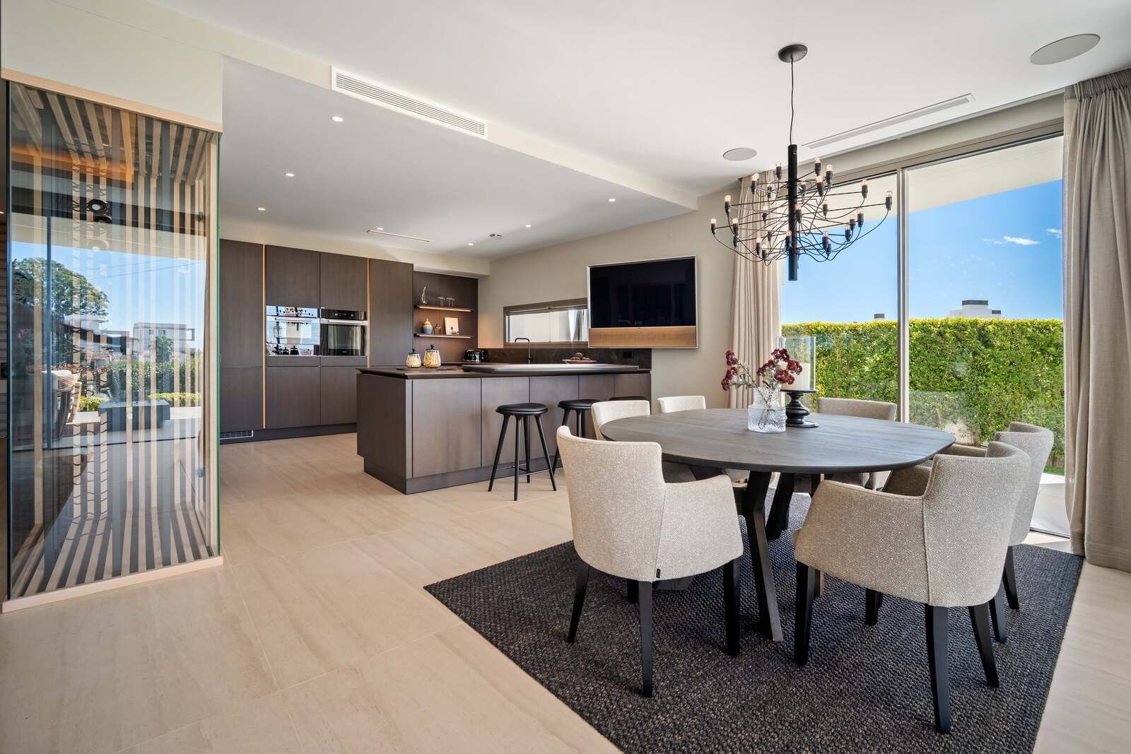 Spread across four luxurious levels and connected by a private elevator, the home exudes both comfort and convenience. The sleek Siematic kitchen comes fully equipped with premium appliances, while underfloor heating ensures year-round comfort and energy efficiency. Integrated Bang & Olufsen speakers and TVs elevate the living experience with timeless elegance and superior sound.
