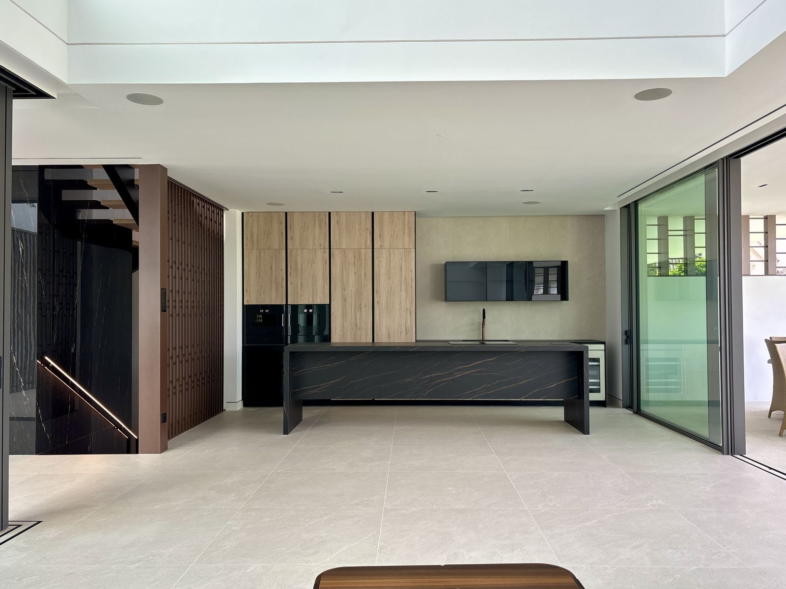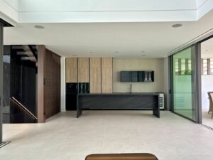 Each villa features 4 bedrooms, 5 bathrooms, and an open-plan living and dining area with a fully equipped kitchen fitted with top-of-the-line Gaggenau appliances.