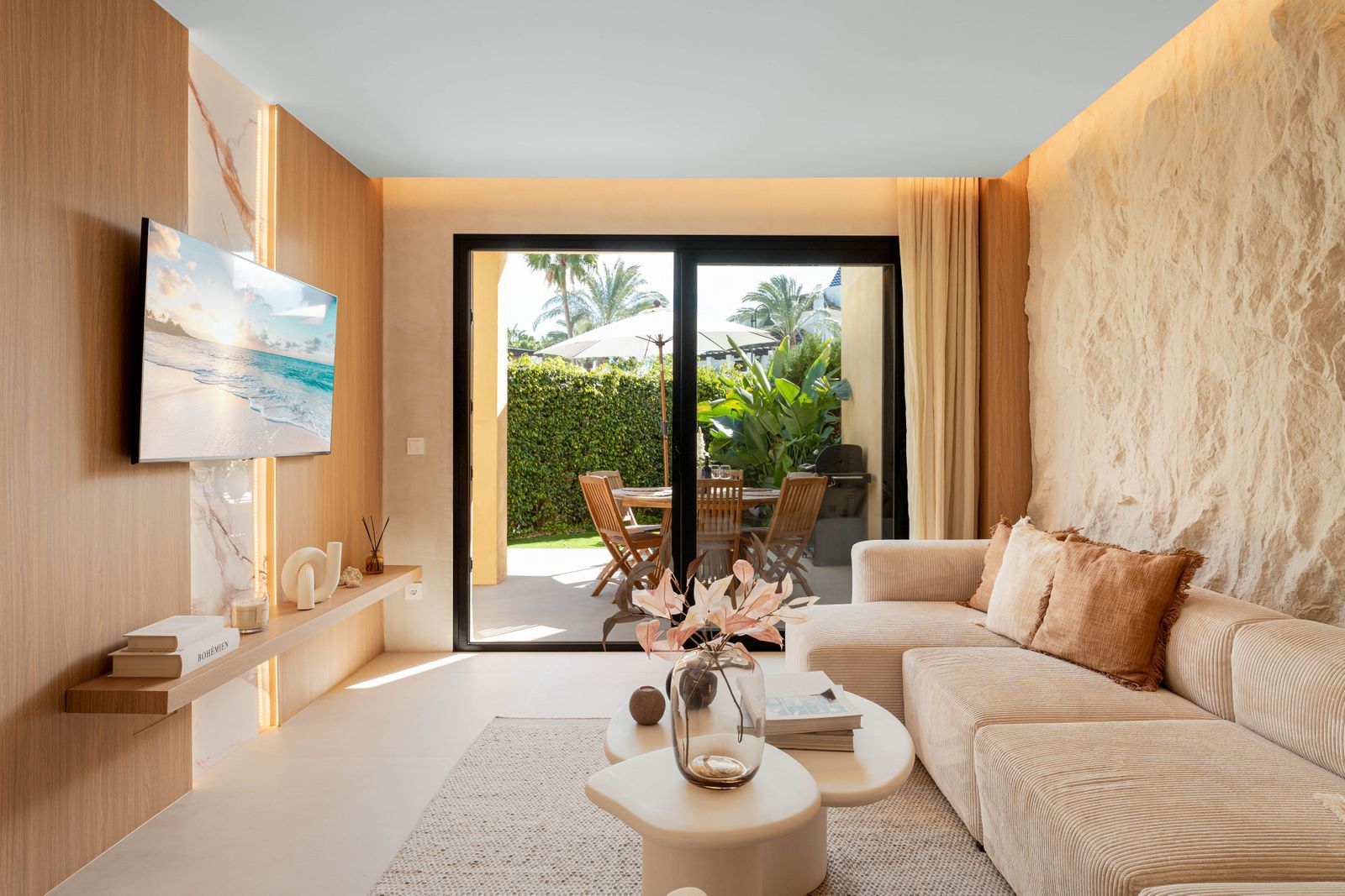 Fully furnished and move-in ready, the home’s interior design reflects a contemporary Mediterranean sensibility—clean lines, natural materials, and a subtle colour palette that harmonizes with the light and sea breeze of Marbella’s coast. Every aspect has been thoughtfully curated for comfort, functionality, and timeless appeal.