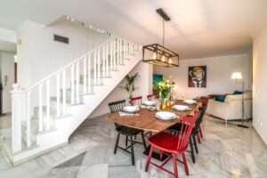 This modernised 4-bedroom, 3-bathroom townhouse is thoughtfully distributed over two floors and is located within a small, friendly, and well-maintained community.