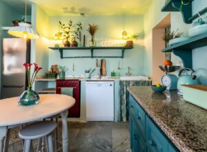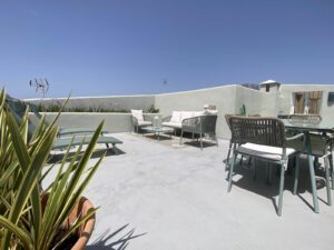 The apartment offers three bedrooms and two bathrooms with shower. The fully fitted kitchen, rich in character and charm, is ideal for everyday cooking. The cozy living room has stairs leading to the private solarium, which offers an idyllic setting for sunbathing, relaxing, or enjoying al fresco meals.