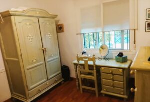 In the attic, another spacious bedroom with a study area and a small roof terrace has been created. The entire house is air-conditioned and secured by a modern alarm system.