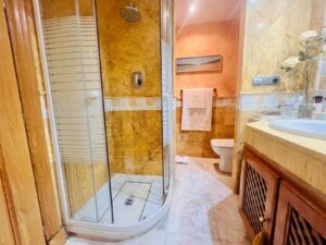 On the first floor, there are two en-suite bedrooms, including a large master suite with a private terrace and a hydromassage bathtub, perfect for relaxing.