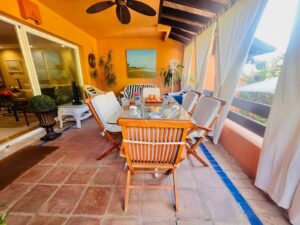 Discover this stunning townhouse, ideally located in a gated community just a 5-minute walk from the beach and the exclusive Puente Romano Beach Resort. With a built area of 450 m² and 245 m² of living space, this property offers a comfortable and luxurious lifestyle. The home is distributed over four levels, allowing you to enjoy every corner of the property.