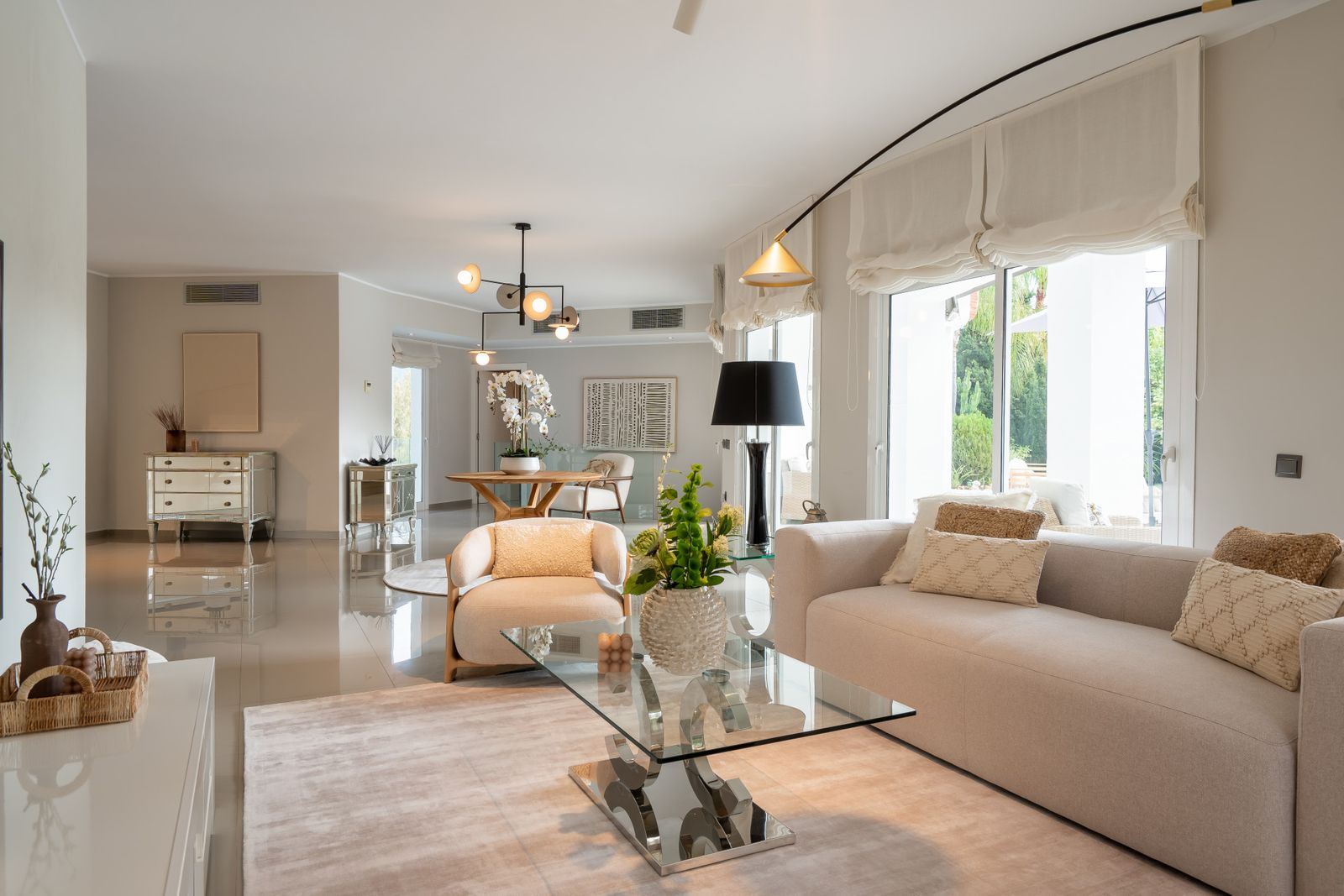 The villa features generous open-plan living areas flooded with natural light, and seamless transitions to the impressive outdoor spaces. A private swimming pool, manicured garden, and multiple terraces create the perfect environment for enjoying the Costa del Sol climate and panoramic views.
