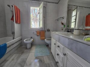It includes numerous extras such as a laundry room, storage room, water tank, solar panels for hot water, an automatic irrigation system, private access, and spacious parking for several cars. With both well and municipal water, an efficient and economical supply is guaranteed. The villa is in good condition and offers potential for expansion or updating, making it an excellent investment. Located close to schools, leisure areas, golf courses, tennis courts, shops, a pharmacy, buses, restaurants and cafes, etc., with excellent road access. This property represents a unique opportunity for those seeking a comfortable, well-located home with great potential in one of the most sought-after areas of the Costa del Sol. The main house consists of 3 bedrooms and 2 bathrooms, and in the pool area there is a studio with a bathroom.