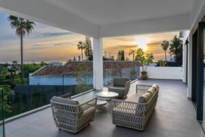 This incredible property is a fully renovated luxury family home in El Rosario, set on a 1,040 m² plot with 460 m² built. It offers four en-suite bedrooms including an exceptional master suite with a walk-in wardrobe. The master suite includes his and her bathrooms with sea views. The home features spacious open-plan living areas plus a private office.