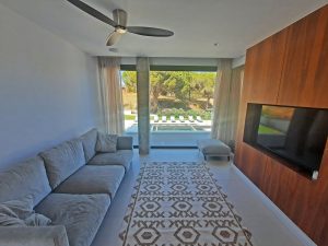 Luxurious Features: Relax in the dedicated Jacuzzi corner, complete with a wall-mounted TV, perfect for unwinding after a long day. The villa is equipped with a modern domotic system, allowing you to control lighting, air conditioning, cameras, and more from your phone.
