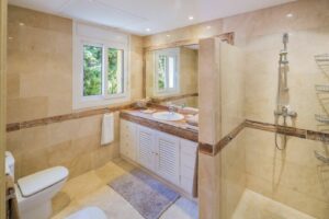 This beautifully decorated villa is comprised of a grand hallway, fully equipped kitchen with a breakfast area, a spacious dining room / lounge with a fireplace and access to the terrace and garden, 4 ample bedrooms with en-suite bathrooms and a guest restroom.