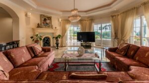 This beautifully decorated villa is comprised of a grand hallway, fully equipped kitchen with a breakfast area, a spacious dining room / lounge with a fireplace and access to the terrace and garden, 4 ample bedrooms with en-suite bathrooms and a guest restroom.