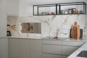 The kitchen was fully renovated three years ago and features Designa Kitchen cabinetry in a Nordic style, with elegant cupboards and drawer solutions that provide both functionality and comfort. The kitchen is equipped with new appliances, including an extra-wide combi refrigerator, a ceramic hob with integrated extractor, new flooring, and a Quooker system providing instant boiling water.
