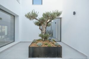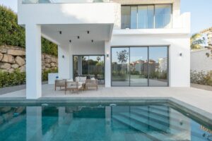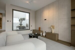 This Brand new exclusive contemporary villa on Arena Beach offers a modern, light-filled living experience. The spacious layout includes four bedrooms, each featuring state-of-the-art en suite bathrooms and handmade wardrobes with integrated lighting. The fantastic living area boasts large windows and direct access to the pool and beautiful private garden, while the high-quality American kitchen is equipped with Siemens appliances. Practical luxury is ensured by separately adjustable underfloor heating and air conditioning throughout the house. Adding to its appeal, the basement presents versatile rooms perfect for a games room, spa, or home cinema.