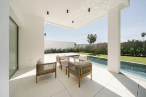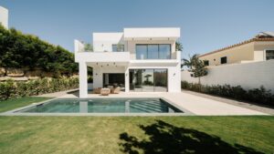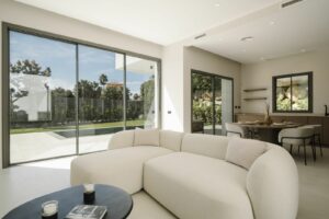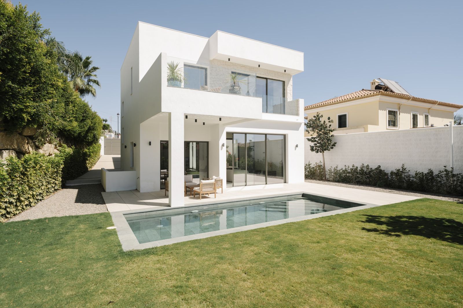 Just five minutes from the shoreline, this exceptional contemporary villa in Estepona combines cutting-edge architecture, refined comfort, and captivating Mediterranean views. Spanning three levels, the property boasts four generous bedrooms—with private ensuite bathrooms and fitted wardrobes—together with an elegant open-plan design tailored for modern living.