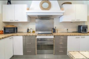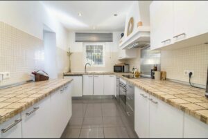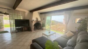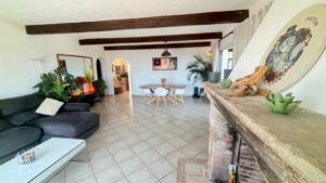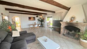 The villa features 4 spacious bedrooms and 4 bathrooms, 3 of which are en-suite, offering privacy and comfort for the whole family or guests. The living area includes a cozy living room with a fireplace, dining area, and several terraces, both covered and uncovered, ideal for relaxing or entertaining. The accommodation is in excellent condition, fully furnished and equipped with a fully fitted kitchen, as well as a laundry area and guest toilet.