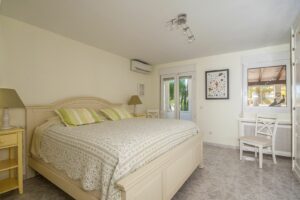 Furthermore the property is equipped with air conditioning, central heating and double glazing with shutters and mosquito nets, ensuring convenience and efficiency throughout the seasons. Outdoors, the property features a beautifully matured garden with automatic irrigation system, offering full privacy. A heated swimming pool with an electric cover, multiple terraces with various seating areas and a small outdoor kitchen create the perfect setting for Mediterranean living. Additional features include a private well with a 12.000 Liter water deposit and a garage for 2 cars with electric gates. A true gem in the sought-after Marbesa area, this villa combines charm, functionality, and luxury—ideal as a family residence or holiday retreat.