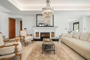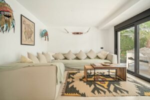 This outstanding luxury villa, fully renovated to the highest standards in 2023, is located just 200 metres from the beach in Marbesa—one of Marbella’s most prestigious and sought-after residential areas, ideally positioned near Elviria and the charming port of Cabopino. Occupying a south-facing plot of 527 m², the property offers 344 m² of elegant living space across two floors, perfectly complemented by expansive outdoor areas designed for refined year-round living.
