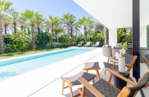 Built to a very high standard this contemporary luxury villa is strategically located near Elviria. Set on 3 levels and over 500m2 built located on a corner plot just 50 meters from the beach and a minutes walk to 5 beach restaurants. The home is exquisitely decorated with carefully chosen designer interiors, warm fabrics, wooden features & mature gardens