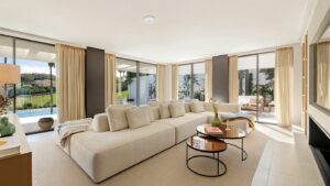 An outstanding design villa which with its frontline golf position, is all about entertainment and golf. Stepping into the villa, you are welcomed by a modern and sleek living space with a nice design kitchen in an open plan to the dining and living room. Through the large floor-to-ceiling glass doors, you will get an amazing view over the golf course of Los Naranjos.