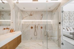 There are five bedrooms and five bathrooms in total, with the main suite offering its own terrace, walk-in wardrobe, and a private bathroom finished to a high standard. Terraces and balconies wrap around the property, giving a choice of sun or shade throughout the day and plenty of space for outdoor dining or simply enjoying the views.