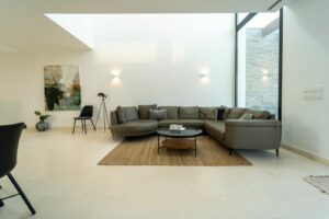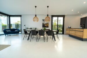 Some of the qualities on offer are high ceilings, floor to ceiling glass doors and windows, internal electric blinds, bespoke lighting, underfloor heating (by water on every level) and air conditioning all of which add to living comfortably here on the coastline.