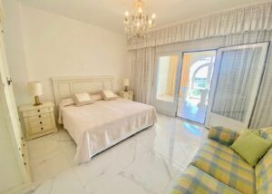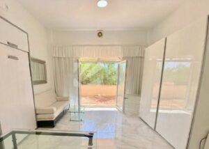 Well-designed and spacious townhouse for sale in Belgravia Club – one of Estepona’s most sought-after frontline developments, offering truly spectacular and unobstructed sea views from several bedrooms and terraces. Here you live right by the sea and enjoy a separate guest studio, providing additional living space completely independent from the main home. It also offers a communal pool, beautifully maintained gardens, and an exclusive clubhouse with four guest rooms that residents can book. Rentals are permitted, making the property ideal both as a home and as an investment.