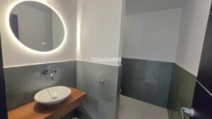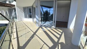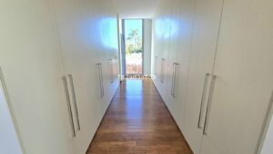 All bedrooms enjoy access to a wraparound terrace and offer built-in wardrobes, large glass doors, and light wood flooring. The elegant bathrooms are finished to a high standard with walk-in showers, bathtubs, and heated towel rails.