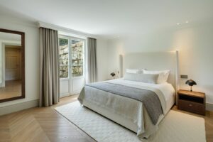 The lower level is dedicated to leisure and functionality, offering a private cinema, gym, massage room, wine cellar, service quarters, and two additional en-suite bedrooms with kitchenette. Technical areas are discreetly separated, enhancing efficiency and ease of maintenance. Integrated Zennio smart home technology provides intuitive control throughout.