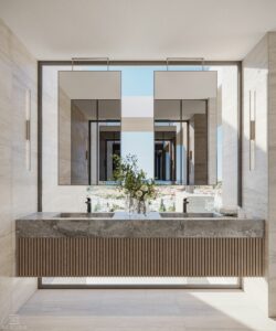 Stunning property set on a corner plot with its own cul de sac entrance. The villa is built over three floors plus a rooftop solarium. In addition to the exceptional living area, the villa also has state of the art domotics, underfloor heating a gymnasium and spa with sauna and hammam and its own wine cellar. The villa has five bedrooms and six bathrooms with two extra toilets spread over three levels. There is interior parking for three cars and car ports for two more add to the privacy and security.