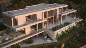 The villa will offer 647 m² of built area on a generous 2,167 m² plot, distributed to maximize space, light, and privacy. It features 5 spacious bedrooms and 7 bathrooms, complemented by four terraces that create seamless indoor-outdoor living. A private swimming pool and landscaped outdoor areas complete the exterior.