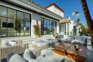 Fully furnished inside and out, featuring Eichholtz interiors, G&G Italia outdoor furniture, a Samsung QLED entertainment system, and an Ambifuego 360-degree fireplace. Every element has been carefully curated to deliver both sophistication and effortless comfort.