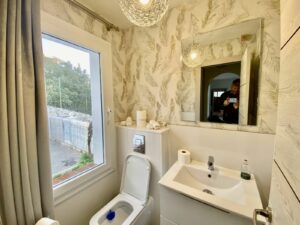 The fully fitted newly installed kitchen is large with quality appliances, a 5 ring gas Hob oven and separate grill. Bay window with so much light and a separate utility/pantry room.