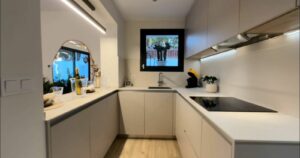It offers 3 bedrooms, 2 bathrooms, a spacious living-dining room with TV area, and a modern fully equipped kitchen with Siemens appliances. The entire house benefits from underfloor heating, air conditioning, and state-of-the-art solar panels capable of generating enough energy to run the property without external electricity consumption.