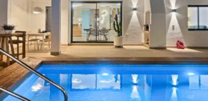 The villa also offers private parking for two vehicles, an outdoor laundry area, and a spectacular rooftop solarium with sea views.
