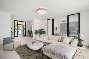 The villa’s location in the sought-after Elviria district places it just a five-minute drive from Carrefour supermarket and essential shops, while the golden sands and vibrant atmosphere of Nikki Beach are less than ten minutes away. Families will value the proximity to international schools such as the German International College, reachable within a few minutes by car.